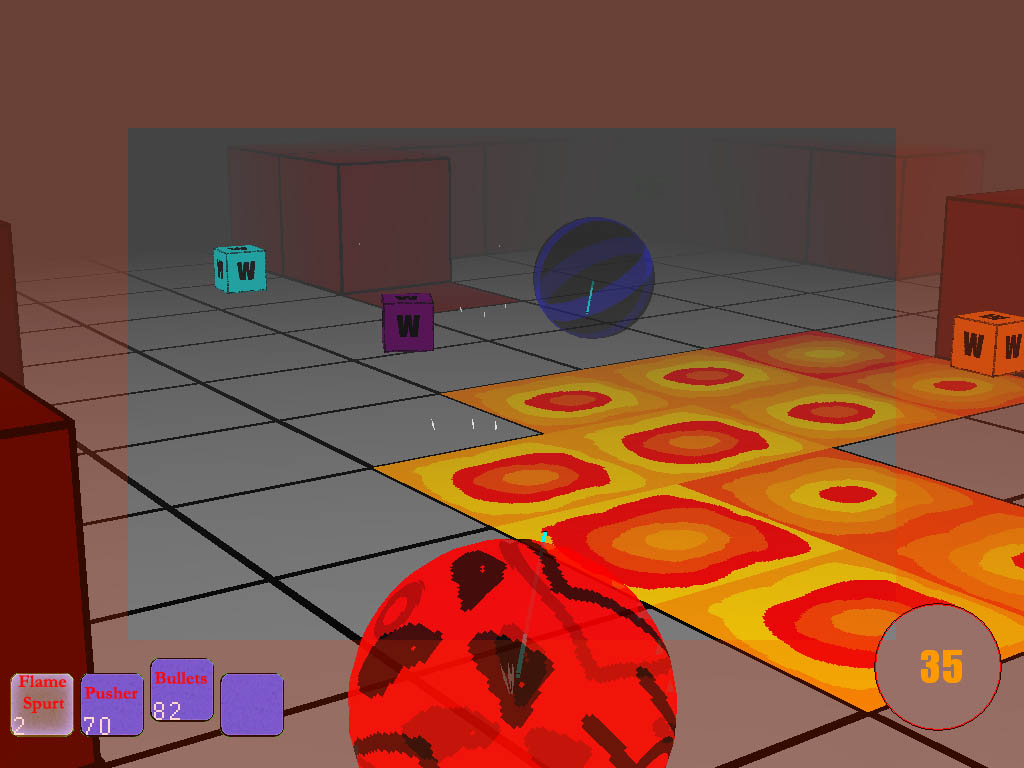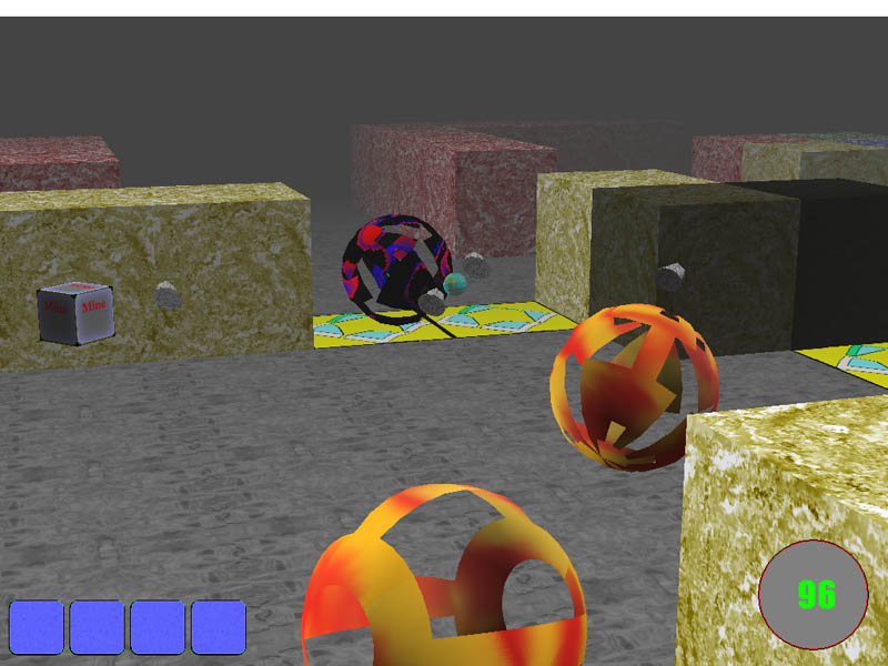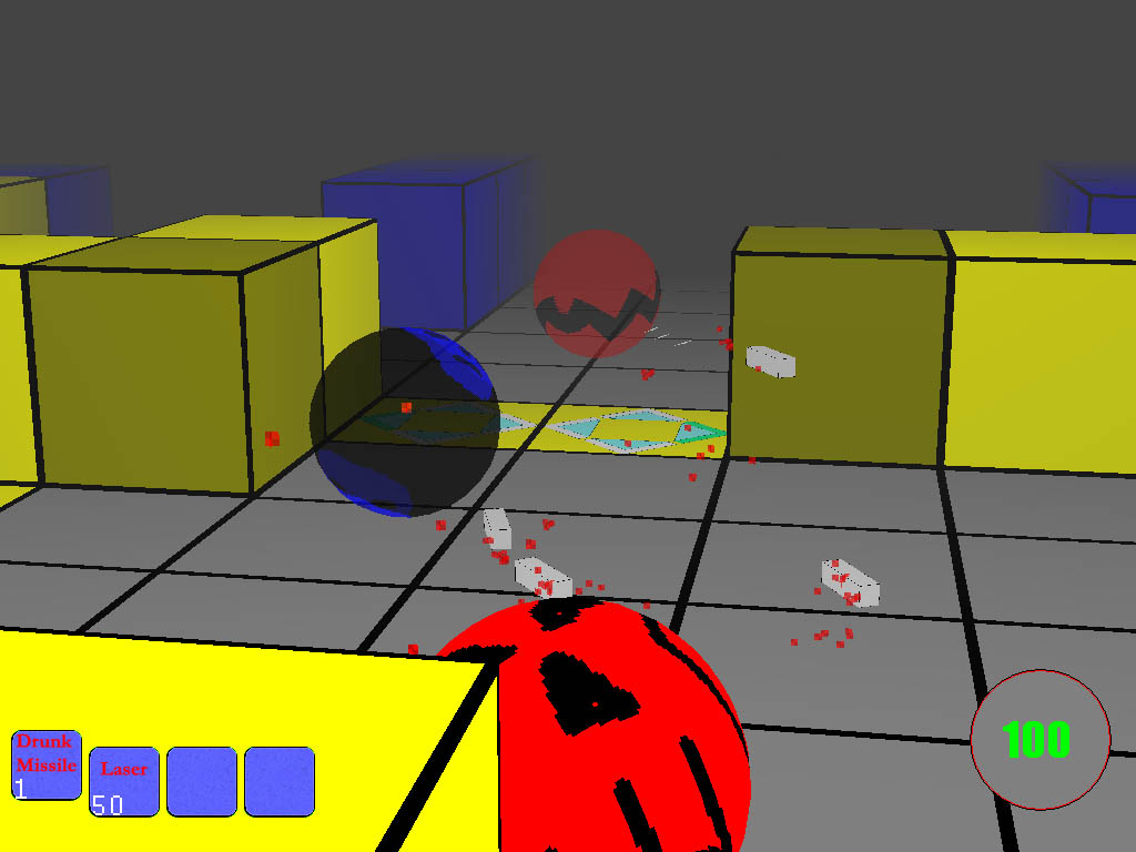 About Hexcentric was a two semester junior game project for DigiPen Institute of Technology. During the summer while taking classes, I removed much of the old game engine and wrote it myself. This new version of the game was far more stable, ran nearly a hundred percent faster, looked much nicer, and worked a lot better. It was dubbed S.P.H.E.R.E. Ver 2.0. Basic Rules: In S.P.H.E.R.E., the player takes control of a spherical combatant, trapped in a set of mazes. Other spheres inhabit the mazes, and the player must fight them to the death. Littered in the mazes are a multitude of weapons that the spheres can use to slaughter each other. Also to be found in the mazes are placeable traps which spheres can use to kill each other with ought ever having to fire a shot. The maze walls take damage when attacked, and will collapse if enough damage is done. Over time, destroyed wall segments will reappear. |