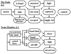 "The Dude" is a smart and fast but physically inferior fighter to the standard team members. He is a pale scrawny fellow with thick glasses and a pocket protector. Since he is fairly weak and can't put up much of a fight, his main strategy is to run away and hide. Being the quickest of all "the Dudes", you'll probably have to get a running start to catch up with him. "The Dude" has roughly 50 percent the strength of a player but has 50 percent more speed to compensate. "The Dude" also has about 25 percent more health than the average player since he has a better diet and works out in his spare time. |