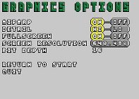 Graphics Options - Allows the user to turn on/off certain graphics features so they can choose between performance or quality. Some options that can be toggled on and off include mipmapping, choosing between high and low detail, bit depth, screen resolution, and whether the game will run in full screen or windowed mode. There will be an apply button so that the user can change several options at once without having the system thrash around. From here the user can quit the game or return to the start menu. |