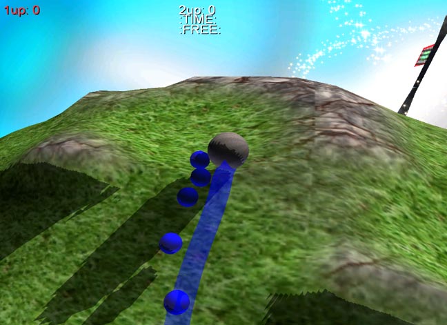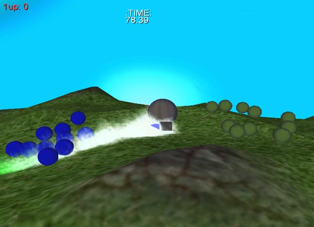 In my third year project, you are sphere on a 3D planet. This planet is inhabited by creatures called Pingos. The goal of the game is to try and rescue the Pingos by leading them to your goal flag. You can lead the Pingos by having them follow a trail of colored paint that you leave behind as you roll. There are creatures who like to eat Pingos and in a multiplayer game you are competing with others to rescue more Pingos. I worked as a programmer/producer on a four person team. My responsibilities included writing a 3D physics engine and 3D camera control code. The world in Pingo is a sphere with six height maps applied to it to create rolling hills and lakes. The world is populated only by sphere shaped objects from the physics engine's point of view. This was one of my first experiences working with the problems of stacking objects. The player can jump on top of a group of enemies or charge through them like pool balls. In the first version of my physics engine, I treated object overlap as an event that needed to be prevented at all cost. This only lead to the entire simulation looking as though it would get stuck. The second and final version of my physics engine treated object overlap as an event that would correct itself in time. The allowed all the objects to collide nicely and gave a good smooth feel when playing. The camera model for Pingo is similar to that in many third person action/adventure games. The camera follows the player but is not locked in the direction the player is facing because in Pingo, the players have no direction that they are facing. The best description of how the camera model works is that the player is dragging a long pole behind them with the camera attached to the end of the pole. I implemented this idea by moving the camera to a fixed distance from the player based on its current position. The height of the camera over the ground is simply adjusted by the player to provide the effect of looking up and down. Copyright 2005 (C) DigiPen (USA) Corporation |