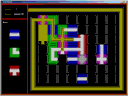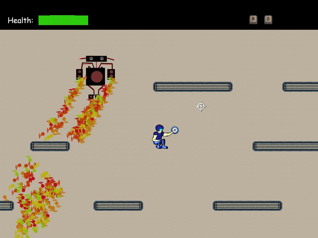 For my second year project, my group decided to create a game that was inspired by both Nintendo's Metroid series and the Disney movie Tron. In the beginning of the game, you find yourself inside a large computer system and must defeat your enemies to escape. The first level has no enemies and is designed to allow for exploration. As the player progresses, he is confronted with components of the system that have become corrupted. He must fight to escape, from a world where bits and bytes have come alive. I worked as a programmer/tech director on a four person team. My responsibilities included creating our level editor, defining data structures to describe internal game data, and implementing the game's physics. The level editor was a simple Windows application that allows the user to edit a tile map of arbitrary size and with an arbitrary number of layers that use parallax scrolling to create a sense of depth. The maps use a palette of tiles, one for each sector of the game. The association between a tile in the map and it's palette entry used an extra look up table that provided the ability to easily animate the tiles in the map. The game world was split into five sectors, each with around ten rooms each. Each room took up about three or four screens of play area. This was represented through data structures for a world, sector and room. These were nested so that the world contained sectors which contained rooms. This allowed us to load just the room that the player is in to keep memory use to a minimum. The sector level of the structure allowed us to load sector wide resources just once when switching sectors. The physics of the game provided quite a challenge for our team. We allowed nearly every object in the environment to interact with all the other objects. In a given room there could be the player, the player's disk weapon, enemies, moving platforms, doors, switches, and enemy projectiles. Copyright 2004 (C) DigiPen (USA) Corporation |