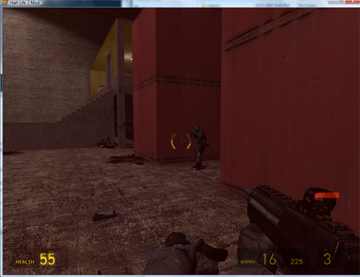 | This is a screenshot from a Half-Life 2 mod. It was from a level design course where we used Valve's Hammer Editor to learn level design. We were even lucky enough to have a few people who worked for Valve come in weekly and show us how to use their tool. They also gave us tips on level design. It was a good educational experience. |